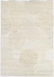 - 5'6" x 8' Area Rug Hand Crafted Circles Pattern in White